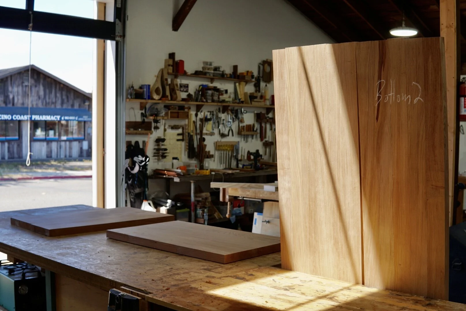 Making shop furniture for a custom fine woodworking shop in Northern California along the Mendocino coast