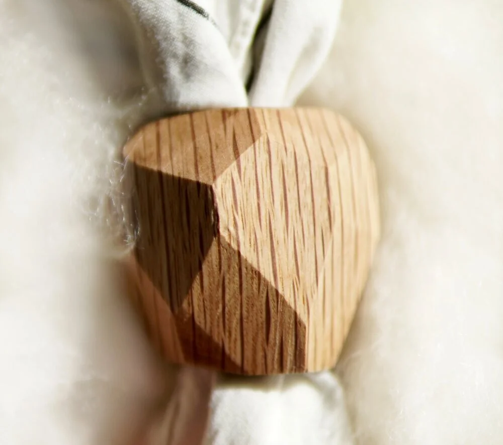 I’m really finishing each one of these like a jewel. I’m mixing the organic finish by hand, the wood is extra carefully selected for the perfect grain, no two are the same, so each are really a little piece of art. I’m letting the grain tell me what kind of facets these need to have. Doesn’t replace a mask, but might as well have some style with the backup.